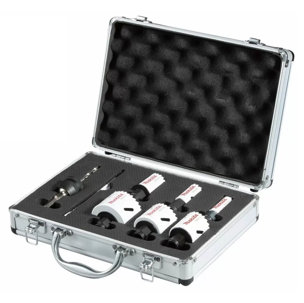 Sada v hliníkovém kufru obsahuje děrovky Ezychange2 o průměru 16, 20, 25, 32, 40 a 51 mm a adaptér se středícím vrtákem HSS-G. Celý popis