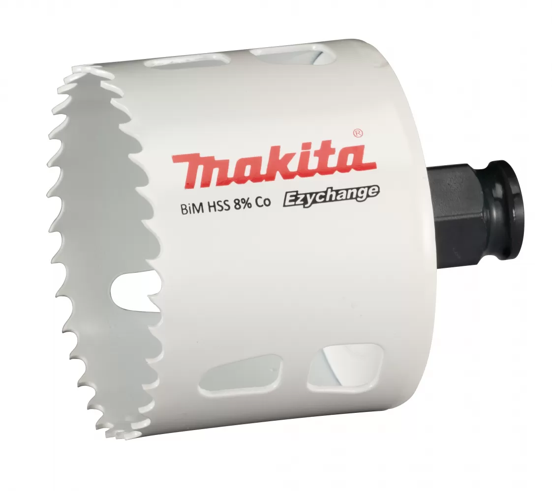 Univerzální rychloupínací adaptér pro všechny průměry ve výši 16-152 mm. Umožňuje velmi rychlou vrtáků a korunek bez použití nářadí. Korunky jsou vhodné pro vyřezávání otvorů ve dřevě, plastech, hliníku, neželezných kovech, oceli nebo nerezovém plechu. Pracovní výška korunky je 44mm. Výška povrchové úpravu zubů HSS-Co 8% je 4 mm. Balení po 1 ks. POZOR NELZE KOMBINOVAT S PŮVODNÍM SYSTÉMEM EZYCHANGE!