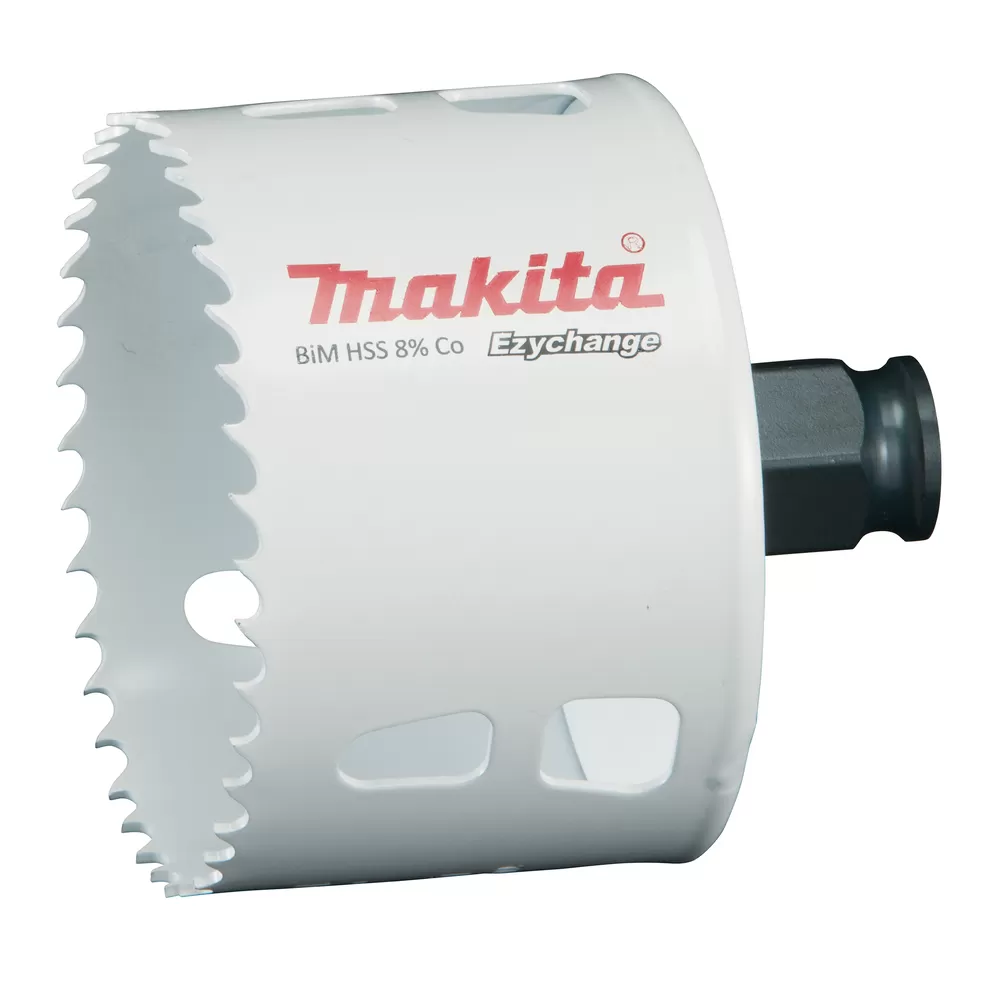 Univerzální rychloupínací adaptér pro všechny průměry ve výši 16-152 mm. Umožňuje velmi rychlou vrtáků a korunek bez použití nářadí. Korunky jsou vhodné pro vyřezávání otvorů ve dřevě, plastech, hliníku, neželezných kovech, oceli nebo nerezovém plechu. Pracovní výška korunky je 44mm. Výška povrchové úpravu zubů HSS-Co 8% je 4 mm. Balení po 1 ks. POZOR NELZE KOMBINOVAT S PŮVODNÍM SYSTÉMEM EZYCHANGE!