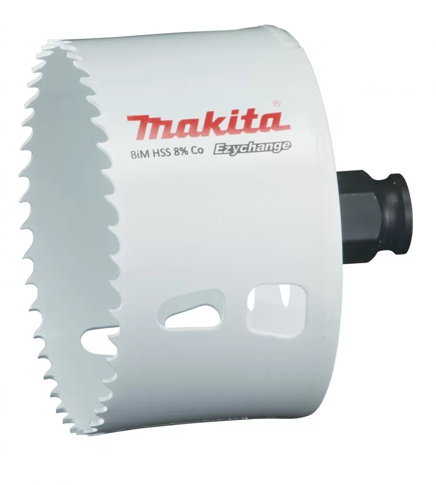 Univerzální rychloupínací adaptér pro všechny průměry ve výši 16-152 mm. Umožňuje velmi rychlou vrtáků a korunek bez použití nářadí. Korunky jsou vhodné pro vyřezávání otvorů ve dřevě, plastech, hliníku, neželezných kovech, oceli nebo nerezovém plechu. Pracovní výška korunky je 44mm. Výška povrchové úpravu zubů HSS-Co 8% je 4 mm. Balení po 1 ks. POZOR NELZE KOMBINOVAT S PŮVODNÍM SYSTÉMEM EZYCHANGE!