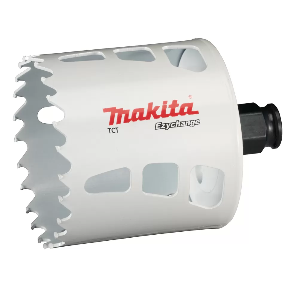 Univerzální rychloupínací adaptér pro všechny průměry ve výši 16-152 mm. Umožňuje velmi rychlou vrtáků a korunek bez použití nářadí. Korunky jsou vhodné pro vyřezávání otvorů ve dřevě, plastech, hliníku, neželezných kovech, oceli nebo nerezovém plechu a díky TCT zubům i ve zdivu, sklolaminátu nebo obkladačkách. Pracovní výška korunky je 60mm. Balení po 1 ks. POZOR NELZE KOMBINOVAT S PŮVODNÍM SYSTÉMEM EZYCHANGE!
