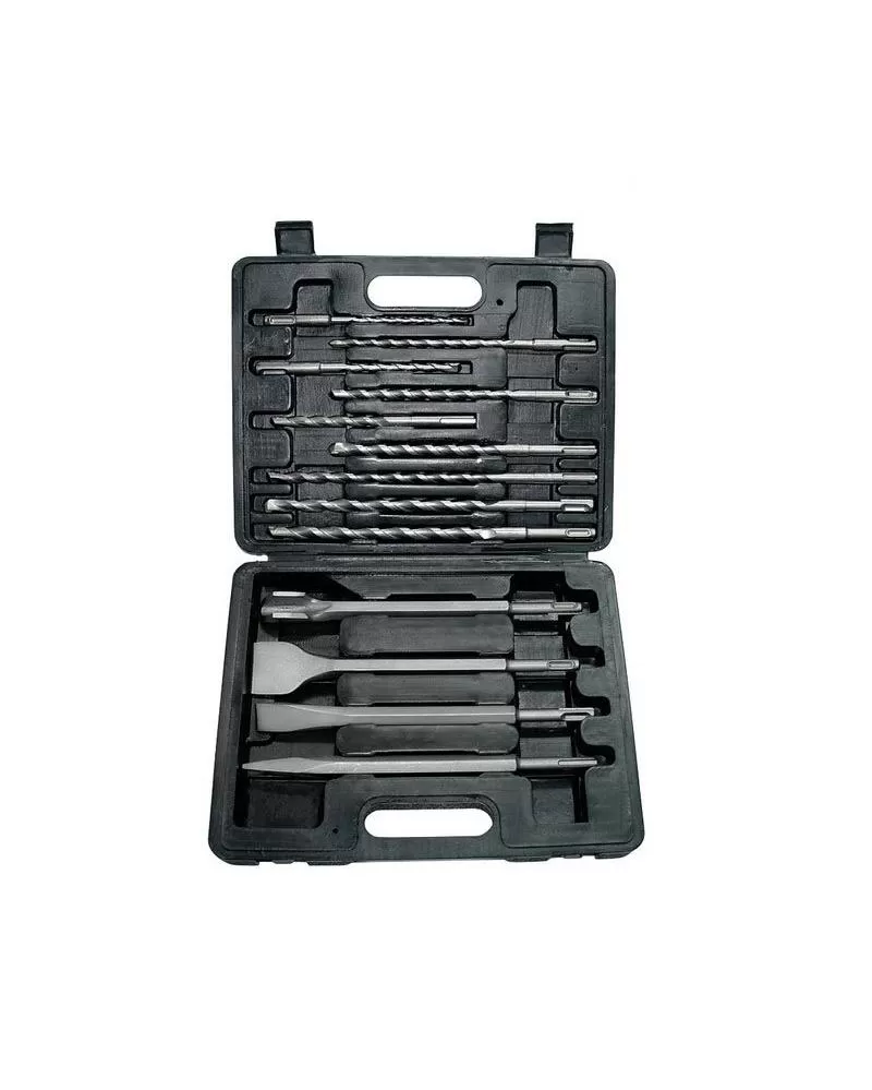 Vrtáky a sekáče SDS PLUS sada 17ks EXTOL 23953 sekáče 250mm: plochý 20 a 40mm, špičatý, sekáče 140mm: plochý 20mm, špičatý, vrtáky: Ř5-6-8-10x110mm, Ř6-8-10-12x160mm, Ř8-10x210mm, Ř12-14x260mm, v kovové kazetě