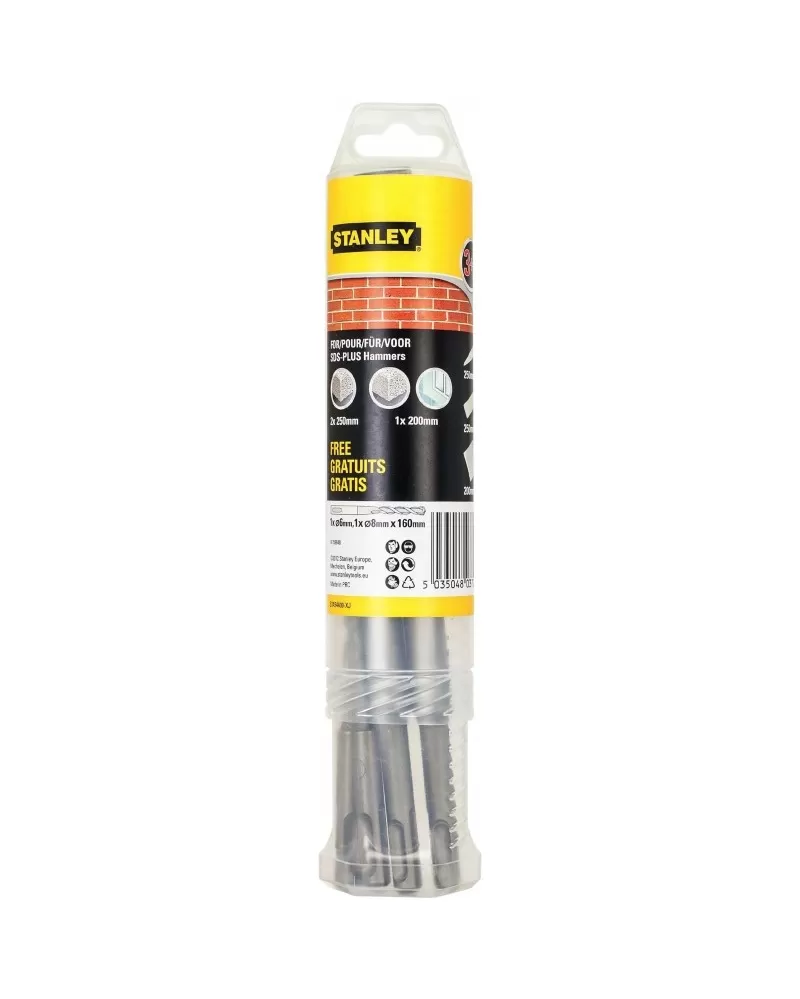 Vrtáky SDS-Plus 6x160 mm, 8x160 mm a sekáč špičatý, plochý, široký Stanley STA54400
