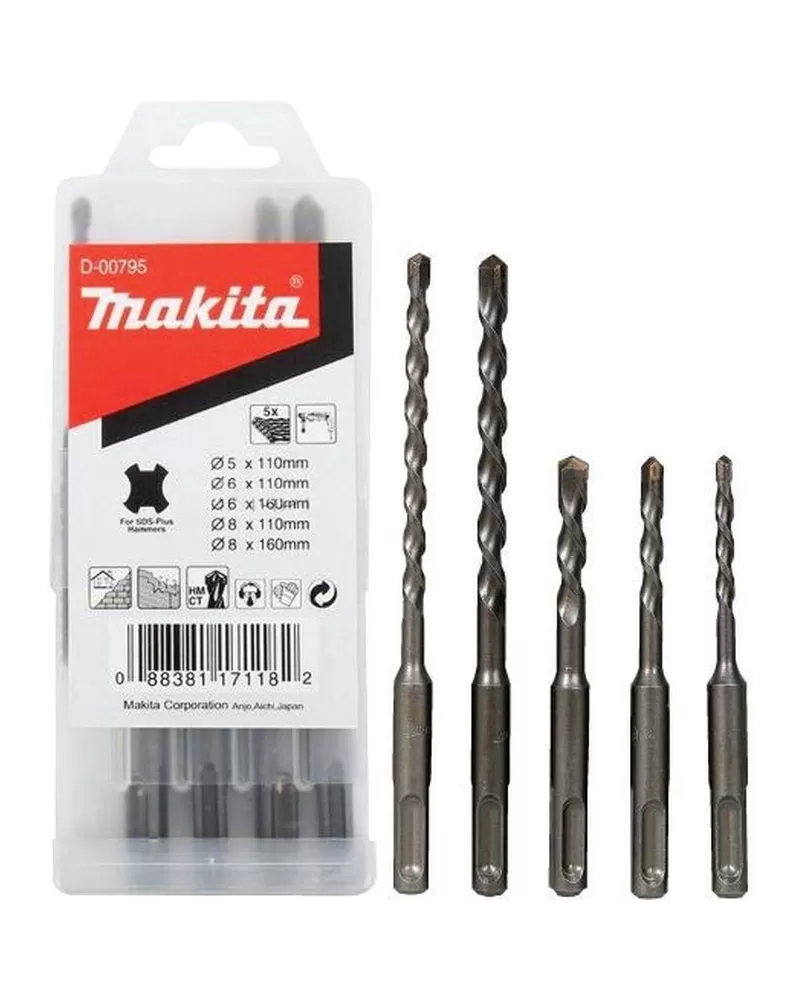 Sada vrtáků SDS-Plus 5 ks v plastové krabičce Makita D-00795
