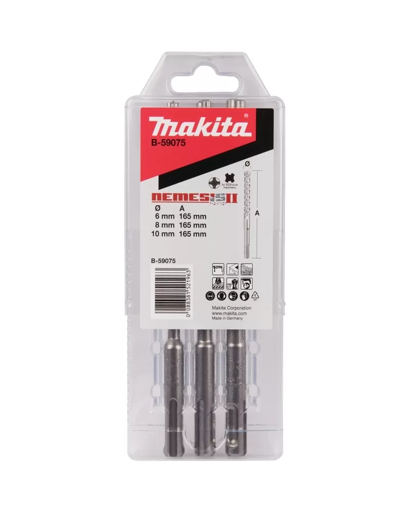 Sada vrtáků SDS-Plus čtyřbřité Nemesis II, 3 ks v plastové krabičce Makita B-59075