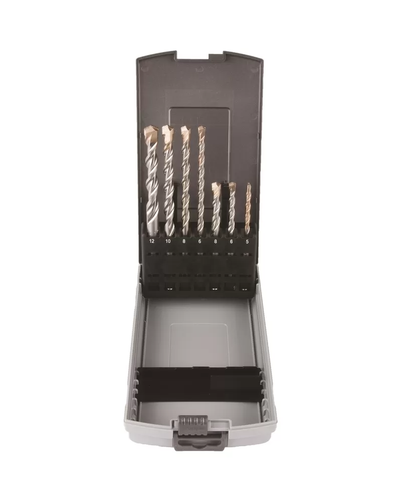• Sada dvoubřitých vrtáků V-PLUS do kladiv SDS-Plus Makita B-49046T. Balení obsahuje vrtáky 1x 5 mm 110/50 mm, 1x 6 mm 110/50 mm, 1x 6 mm 160/100 mm, 1x 8 mm 110/50 mm, 1x 8 mm 160/100 mm, 1x 10 mm 160/100 mm, 1x 12 mm 160/100 mm. Celkem 7 ks. Baleno v plastové krabičce