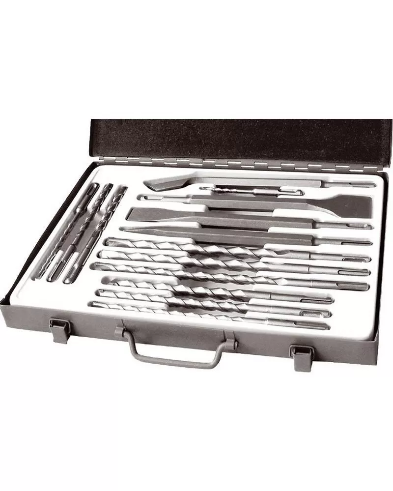 Vrtáky a sekáče SDS PLUS sada 17ks EXTOL 23953 sekáče 250mm: plochý 20 a 40mm, špičatý, sekáče 140mm: plochý 20mm, špičatý, vrtáky: Ř5-6-8-10x110mm, Ř6-8-10-12x160mm, Ř8-10x210mm, Ř12-14x260mm, v kovové kazetě