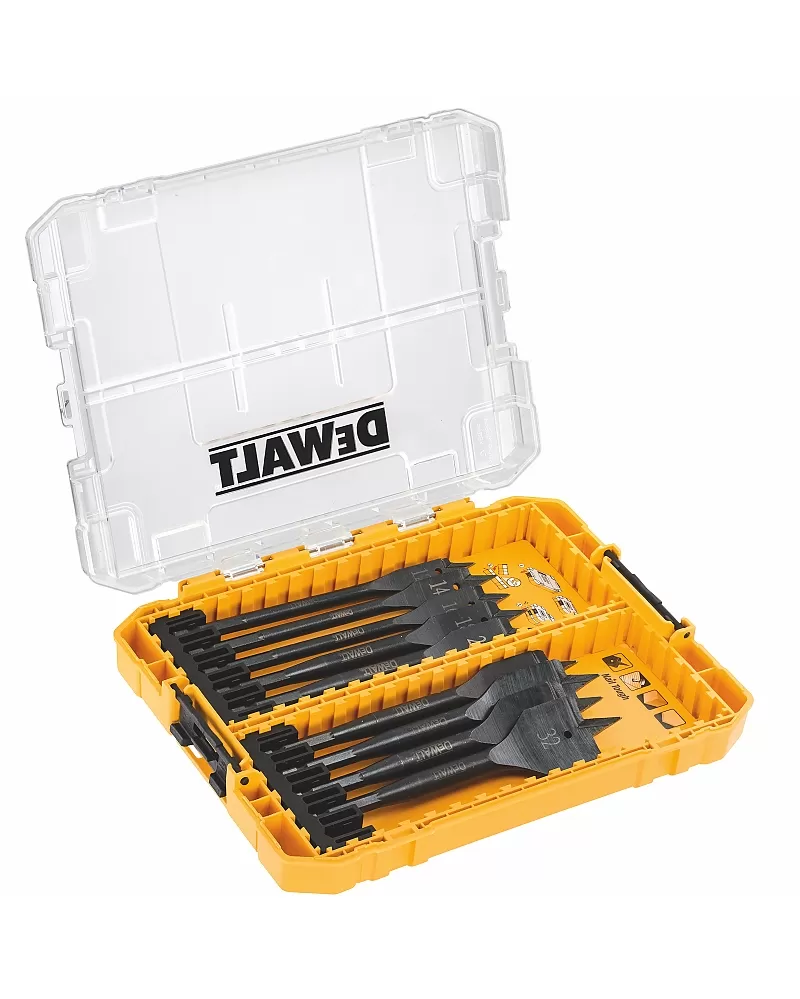 9dílná sada plochých vrtáků do dřeva DeWALT DT70751 Sada obsahuje: vrtáky 12; 14; 16; 18; 20; 22; 25; 28; 32mm Medium Tough Case Celý popis