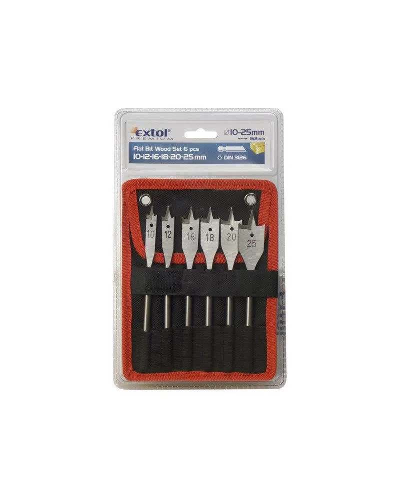 Vrtáky ploché do dřeva sada 6ks 10-12-16-18-20-25mm délka 150mm EXTOL PREMIUM 8801210