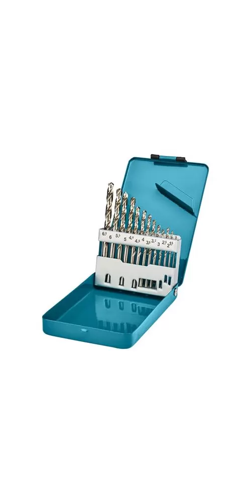 Sada 13 ks vrtáků HSS-G s průměry 1.5, 2, 2.5, 3, 3.2, 3.5, 4, 4.5, 5, 5.2, 5.5, 6 a 6.5 mm. Vrtáky jsou určeny k vrtání do kovu a jsou opatřeny řezným bodem 118 stupňů. Sada je dodávaná v kovové krabičce.