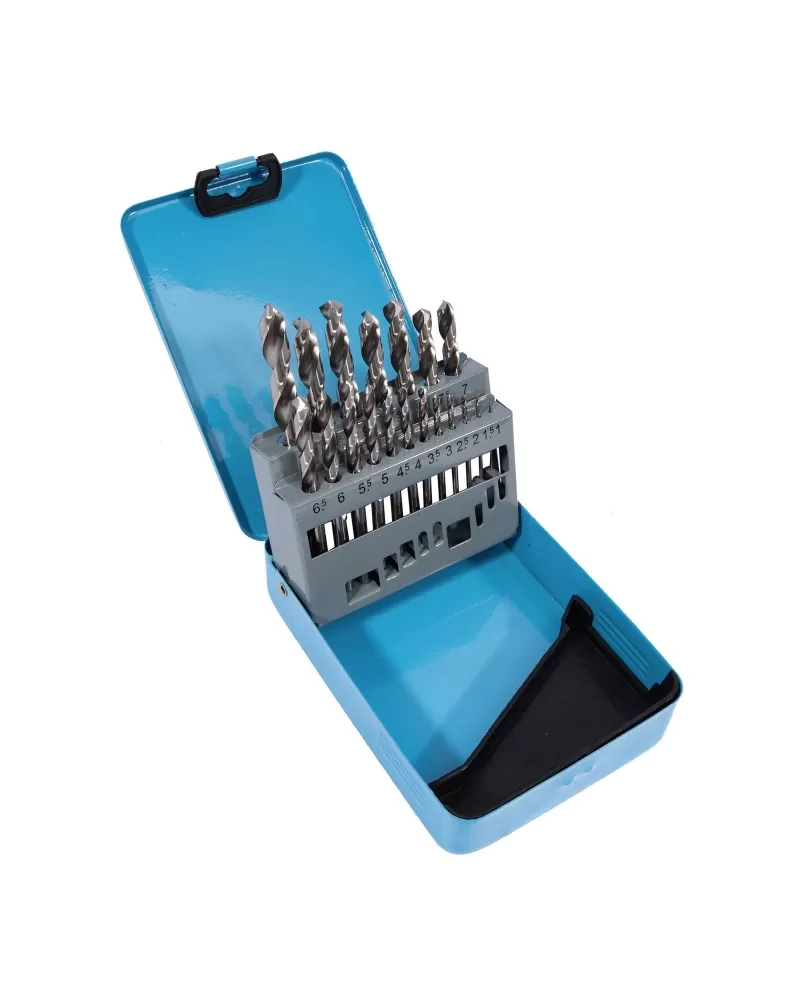 • Sada vybrušovaných vrtáků HSS-G z rychlořezné oceli vyrobených dle normy DIN 338 s vrcholovým úhlem 118° pro vynikající kvalitu a přesnost vrtání.