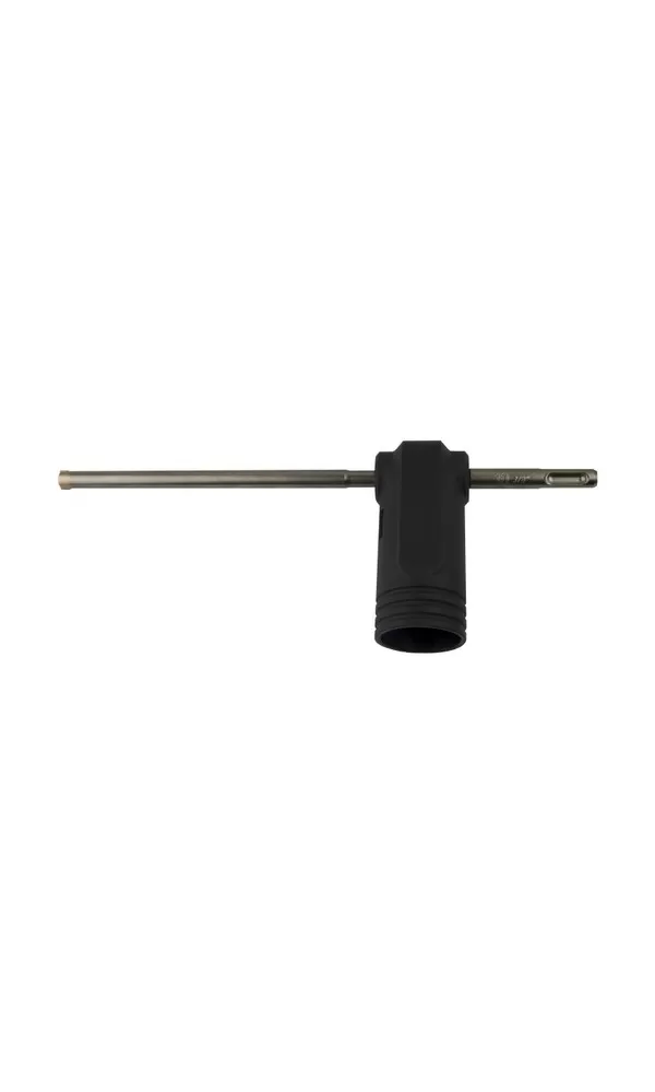 • Vrták je dutý a je vybaven adaptérem, do kterého se připojuje hadice vysavače. 98% odvrtaného materiálu a vzniklého prachu je odsáto okamžitě v místě vzniku. Nečistoty procházejí hlavou vrtáku do středu nástroje a odtud rovnou do vysavače. Nedochází proto ke znečištění stěn a okolního pracoviště. Také vzniklý otvor je naprosto čistý.