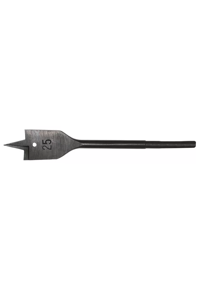 Plochý vrták do dreva s centrovacím hrotom a šesťhrannou stopkou. Vhodné na vŕtanie do stredne tvrdého a tvrdého dreva, preglejky a laminátu.