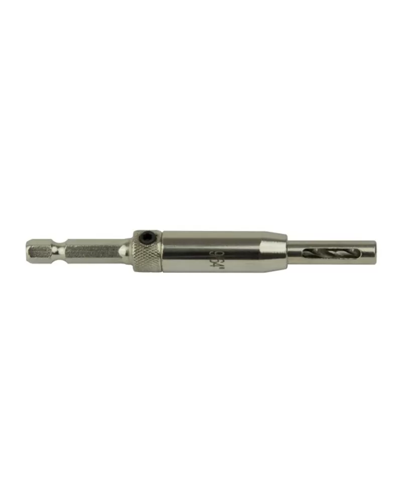 středící vrták z HSS je uložen v posuvném pouzdru, díky němuž je vrták naveden vždy kolmo a přesně do středu otvoru v pantu
