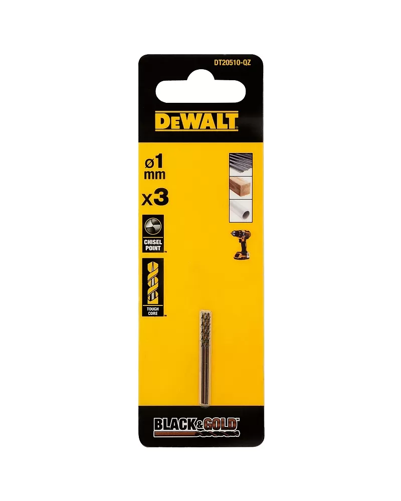 Vrták do kovu 1 mm / 3ks HSS-G Black&Gold DeWALT DT20510 Univerzální vrták do kovu HSS-G Black&Gold značky DeWALT Optimalizovaná šroubovice… Celý popis