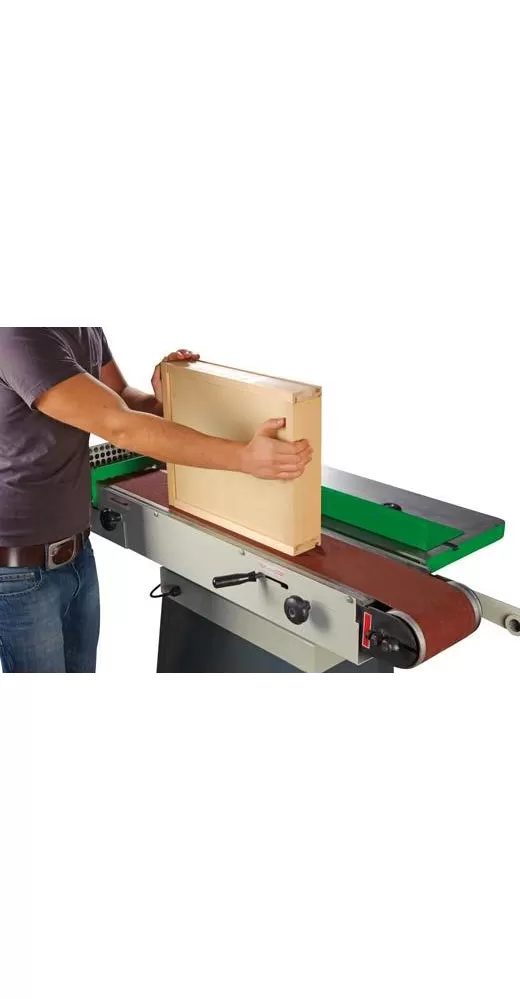 Pásová bruska HOLZSTAR KSO 850 (230 V) se sklopným brusným agregátem a kmitajícím brusným pásem pro perfektní výsledky broušení.