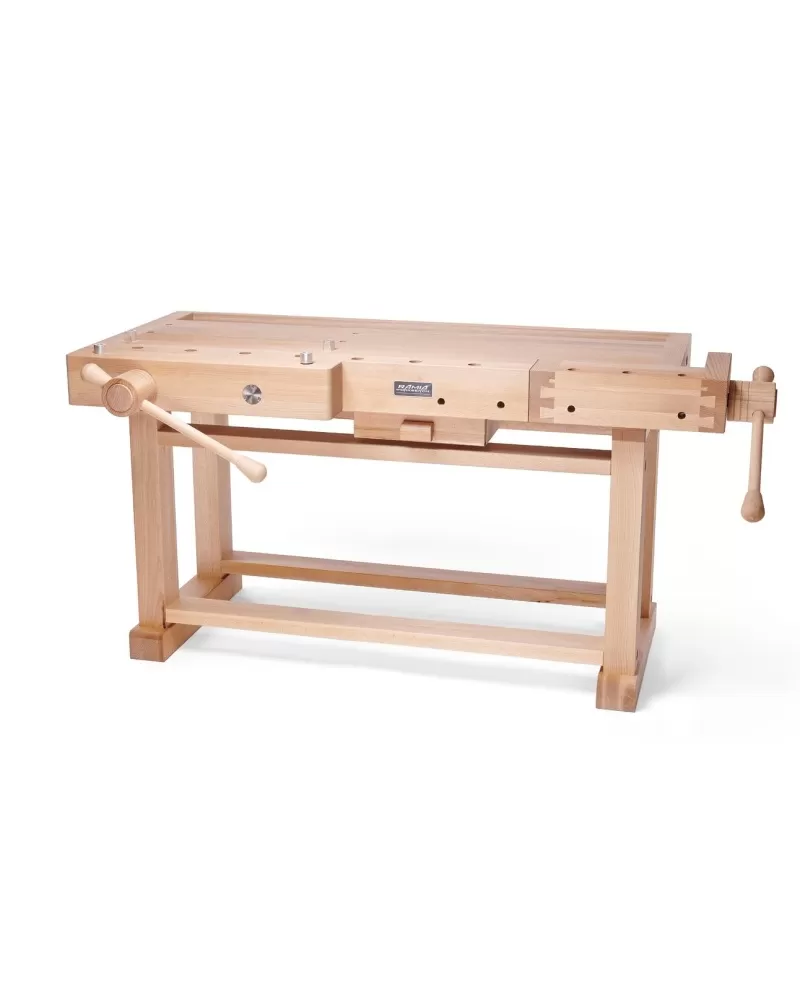 • Povrchová úprava olejem, rybinová konstrukce, průběžná buková spárovka, koryto na nářadí, speciální řetězové vřeteno předního vozíku, dvojité vedení zadního vozíku