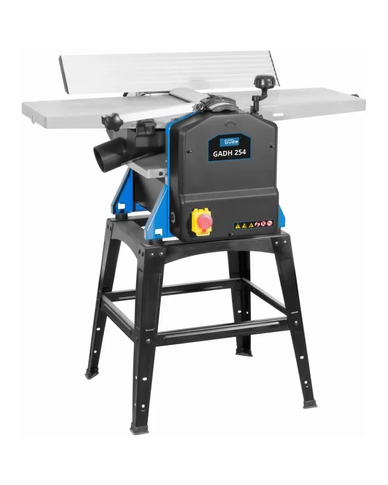 • Konstrukce: hliníkový hoblovací stůl (d x š: 920 x 264 mm), ochranný kryt nožové hřídele, výsuvná opěrka obrobku, HSS řezné nože (2), přípojka odsávání, robustní ocelový podstavec