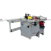 • Tento promyšlený multifunkční stroj kombinuje **kotoučovou pilu, frézku, srovnávací a tloušťkovací hoblovku** v jednom prostorově úsporném zařízení