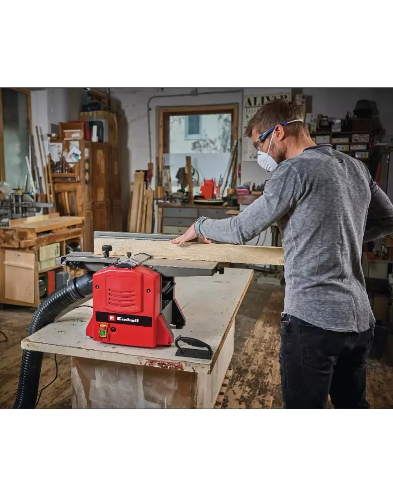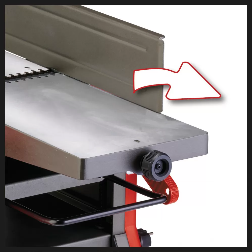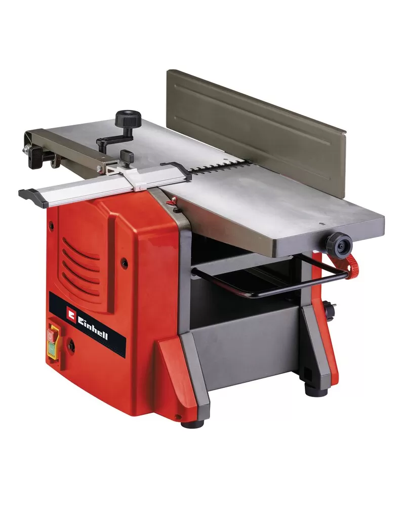 Hoblovka Einhell TC-SP 204/2 je vysoce kvalitní masivní stroj s příkonem 1 500 W pro přesné a rychlé tloušťkové hoblování a hoblování. Díky svému vysokému výkonu udržuje stroj neustále vysokou rychlost otáček hřídele, čímž zajišťuje optimální výsledky hoblování pro všechny typy dřeva. S tloušťkovačkou s výsuvnou podpěrou obrobku a rychlým automatickým vkládáním maximálně 6 m/min se snadno manipuluje. Díky výškovému nastavení až do 3 mm pro obtahování a 2 mm pro hoblování tloušťky lze úběr materiálu jemně nastavit ruční klikou. Hoblík je dodáván se dvěma odolnými hoblovacími noži HSS. S výškou otvoru až 120 mm a šířkou otvoru 204 mm je hoblovka vhodná pro obrábění desek, pásů nebo menších trámů. Pro udržení čistoty na pracovišti lze například k sacímu adaptéru Ø 100 mm připojit odsávací systém. Hoblovací stůl stacionárního hoblíku je vyroben z robustního hliníku a je opatřen šikmým koncovým dorazem. Kromě pevné konstrukce zajišťují potřebnou stabilitu také nožičky tlumící vibrace. Hoblík je také vybaven spínačem přetížení a spínačem nulového napětí, které zabraňuje neúmyslnému spuštění stroje po poruše .