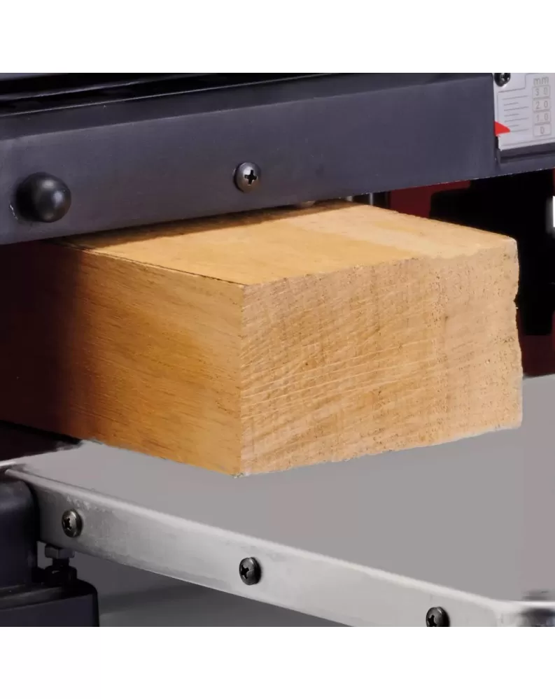 Ruční klikou lze nastavit maximální úběr pro hoblování až do tloušťky 3 mm. S šířkou otvoru 330 mm a výškou otvoru 153 mm je hoblík vhodný pro rychlé hoblování tloušťky s rychlostí vkládání 8,4 m /min.