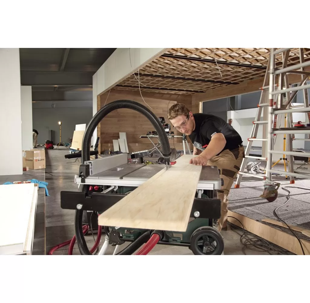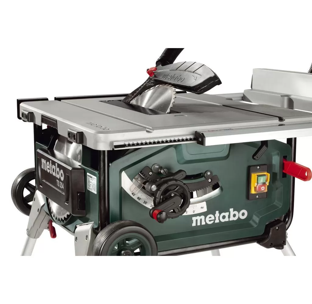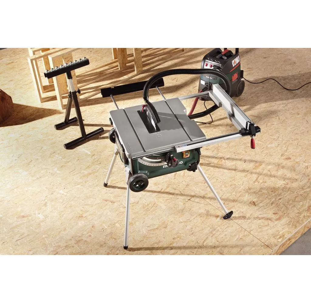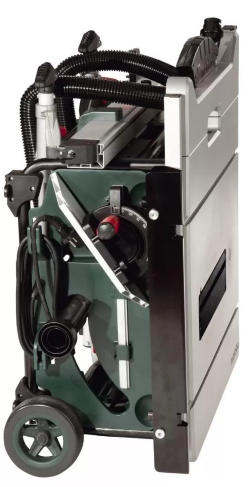 Nejlehčí mobilní stolní okružní pila s hmotností 33,4 kg sestavená během 15 vteřin Metabo TS 254, pila má dvě pracovní výšky plus pozici pro transport a uložení.