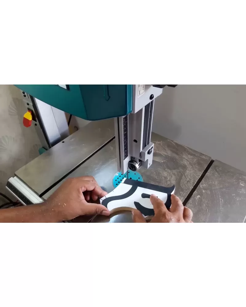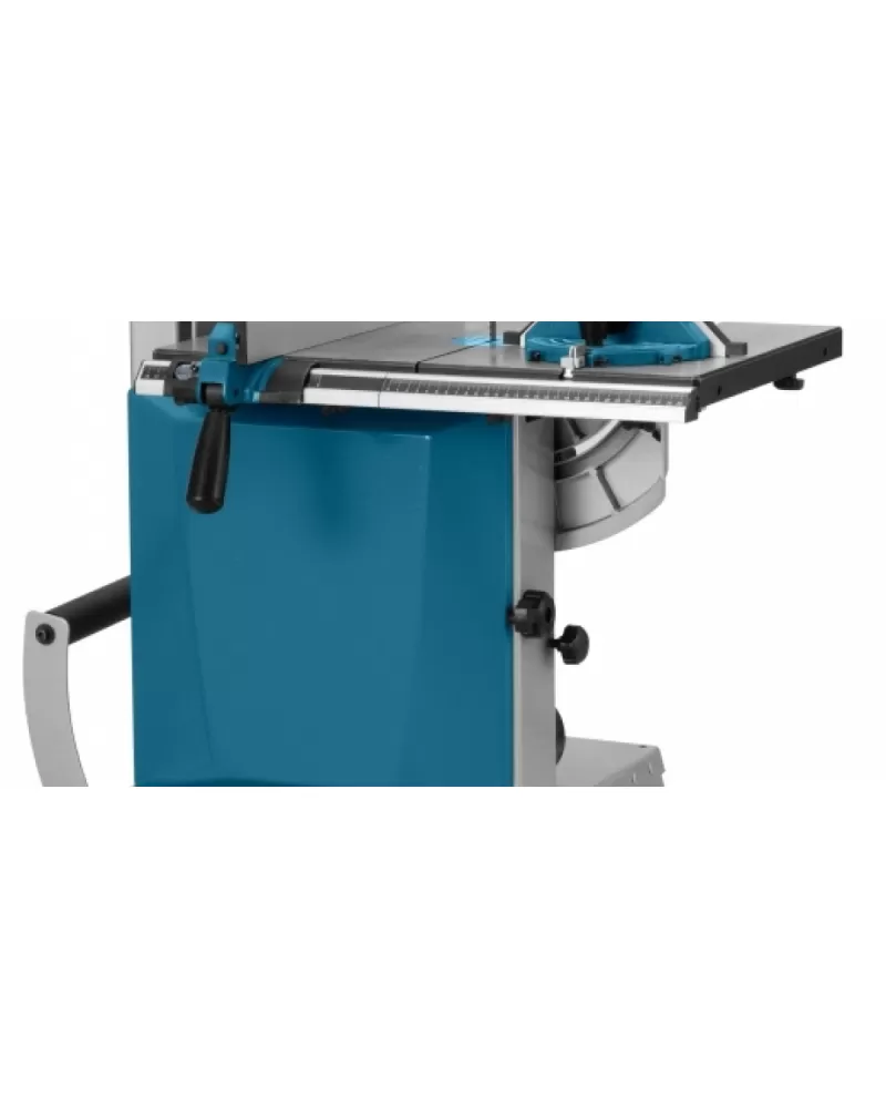 Pár pojezdových kol a praktický držák uživateli značně usnadňuje manipulaci s pilou a díky robustnímu stojanu zůstává zároveň zachována stabilita pily pro přesné řezání.