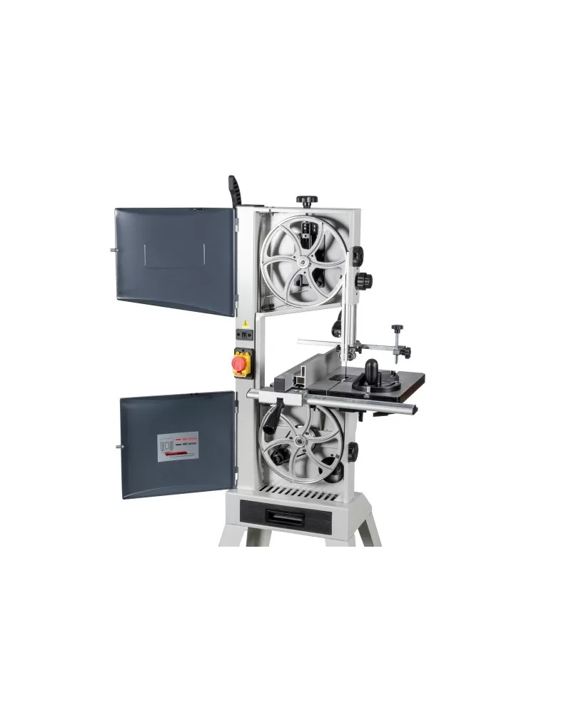 • Pásová pila na dřevo je určena pro dělení měkkého i tvrdého dřeva, dřevotřískových a překližkových desek. Pohon pilového pásu zajišťuje jednofázový asynchronní elektromotor s kotvou nakrátko, který je ovládaný dvoutlačítkovým ovladačem , který se spouští na podpětí s funkcí tlačítka pro nouzové zastavení stroje. Pracovní stůl z hliníkové slitiny je možné naklápět v rozsahu 0 – 45°. Stůl je vybaven podélným vodícím a úhlovým příložníkem. Pila je opatřena přírubou pro připojení na odsávací zařízení. V závislosti na použití druhu pilového pásu, lze na stroji řezat různé materiály (dřevo, plast a neželezné kovy), tak i různými technikami, při použití širších pásů lze řezat rovné řezy a pokud použijete užších pásy, oceníte je především při vyřezávání.