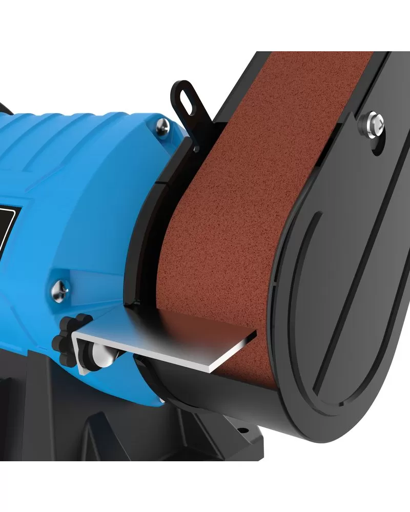 • Vylehčená kovová skříň, rychloupínání pásu, nastavitelné opěrky obrobku.