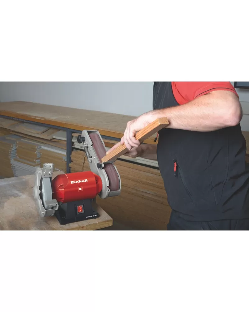 • Stacionární pásová bruska TH-US 240 je výkonným pomocníkem pro hrubé a jemné broušení měkkých kovů a dřeva všeho druhu