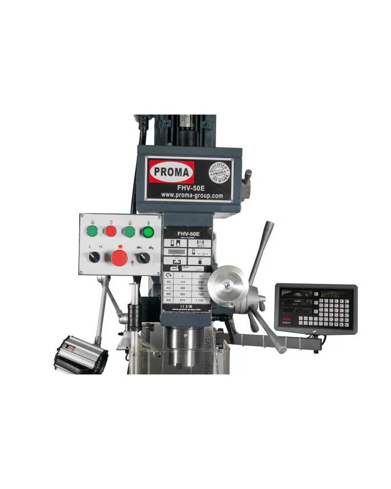 • Univerzální frézka Proma FHV-50E je vhodná pro lehčí aq středně težké frézovací práce.