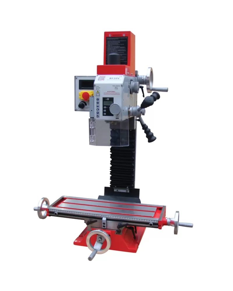Frézka Holzmann BF 20V 230V s variabilním nastavením rychlosti s digitálním ukazatelem je vhodná pro školy a pro kutily. Digitální ukazatel výšky je u této frézky jako standard. Přesné vedení vysoce kvalitního křížového stolu s měřítkem ve V drážce a koncovými zarážkami je nastaven vůlí. Běh frézky Holzmann BF 20V je možný po a proti směru hodinových ručiček. Frézka má třípákové ovládací kolo pro vrtání, samostatné ruční kolo pro frézování a plynulou nastavitelnost otáčení vřetena, která rozšiřuje možnosti použití.