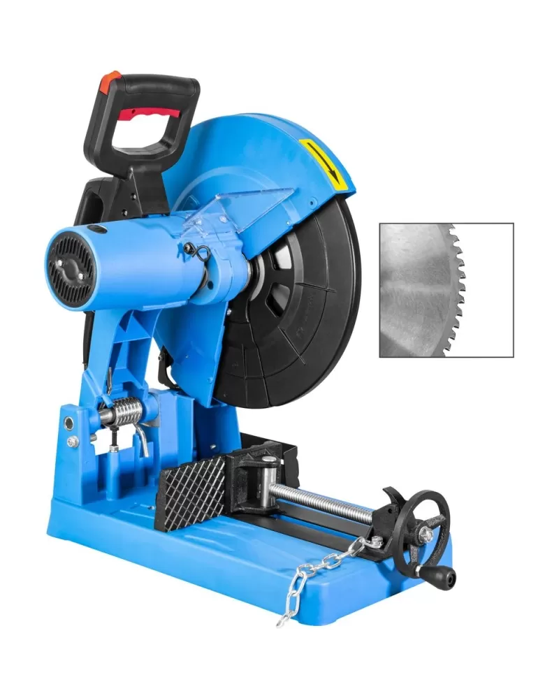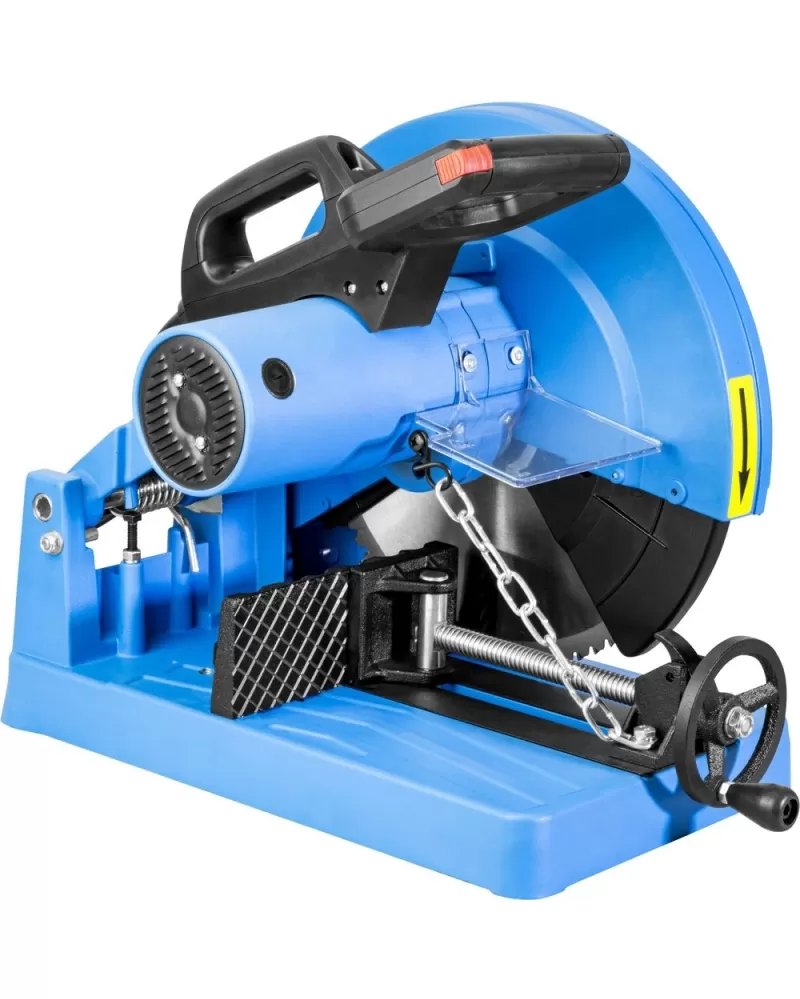 • Konstrukce: pilový kotouč 355 x 25,4 x 2,3 mm (SK), ochranný (kyvný) kryt kotouče, robustní ocelový podstavec (vč. integrované nádobky na prach), držadlo pro pohodlné přenášení.