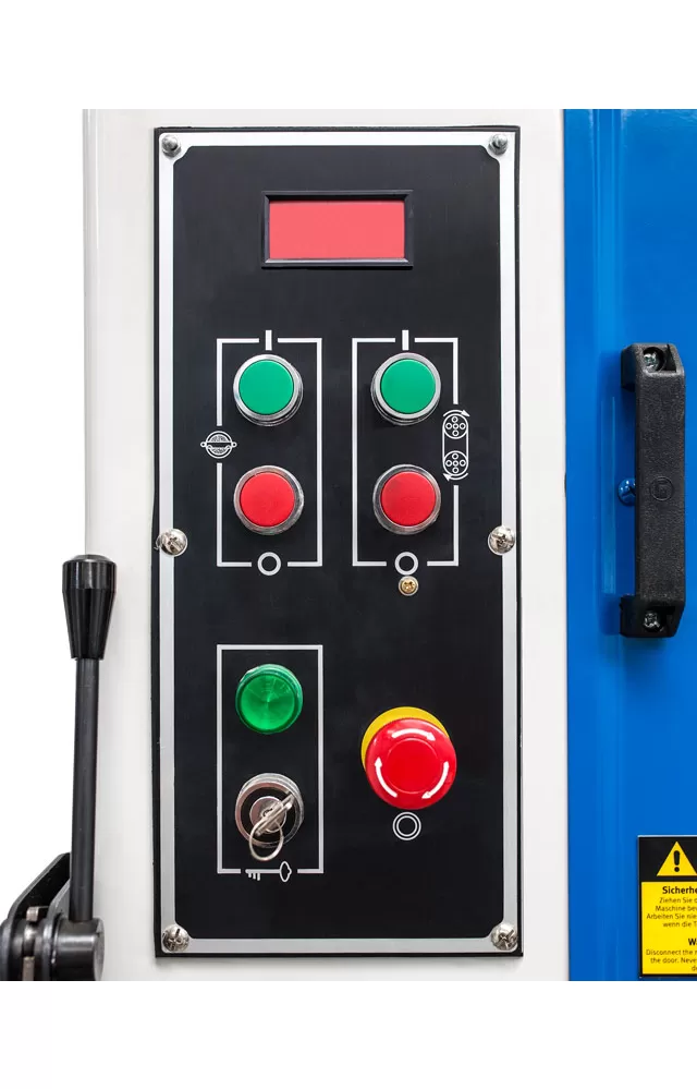 • Vertikální pásová pila na kov s robustní konstrukcí a svařovací jednotkou pásu.