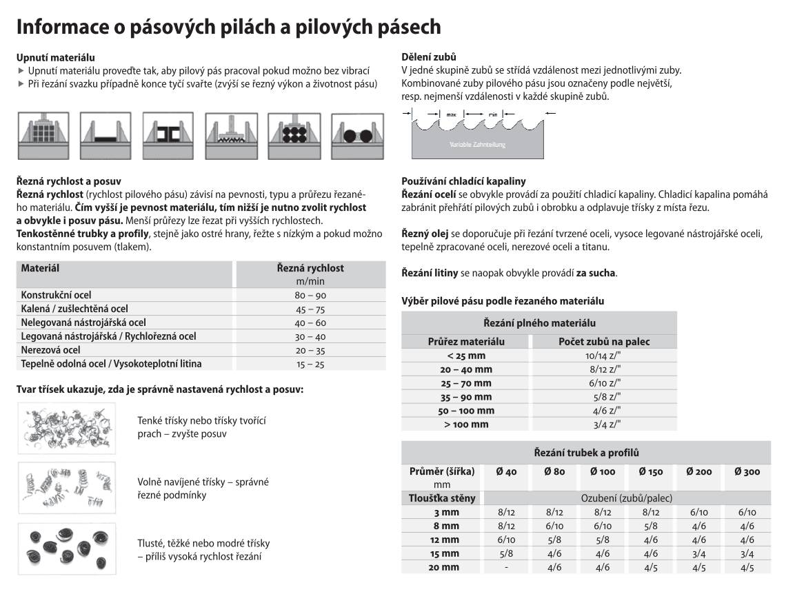 Rychlost pilového pásu 15 – 120 / 190 – 1 500 m/min