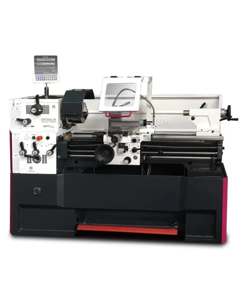 Přesný Soustruh OPTIturn TH 4215 D vybavený vodícím a tažným šroubem pro snadnou obsluhu s digitálním odměřováním polohy DPA 21. Volitelně v provedení VARIO s plynulou regulací otáček pomocí frekvenčního měniče zn. Lenze.