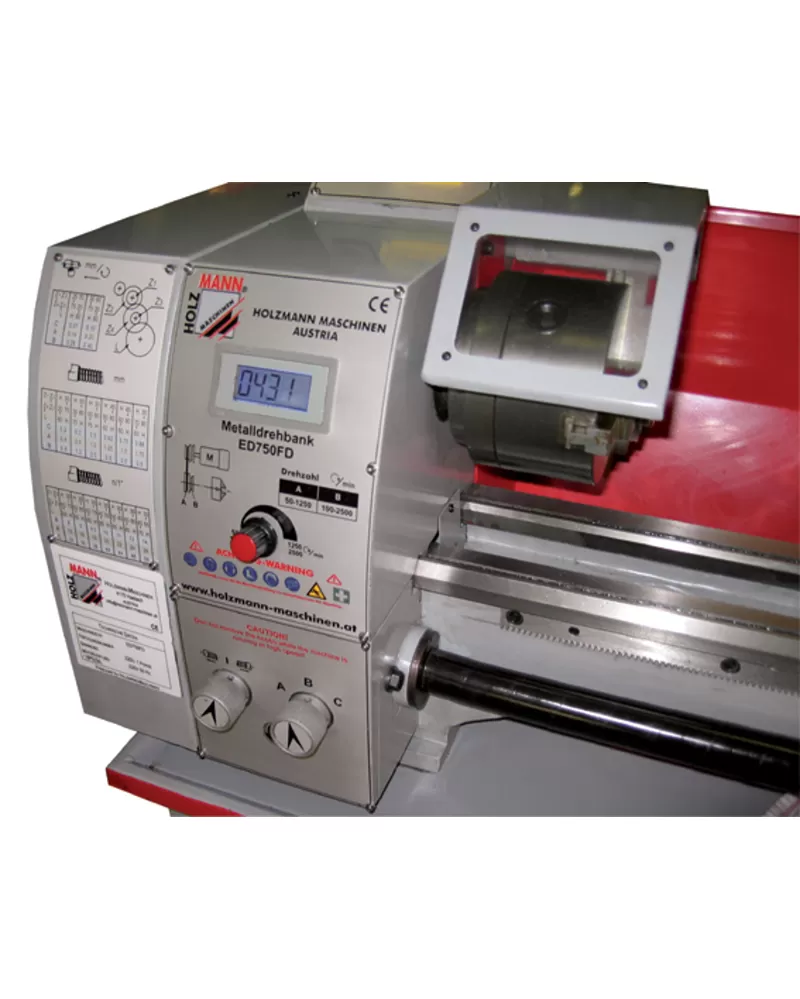 Sústruh na kov Holzmann ED 750FD s diódovým indikátorom otáčok vretena.