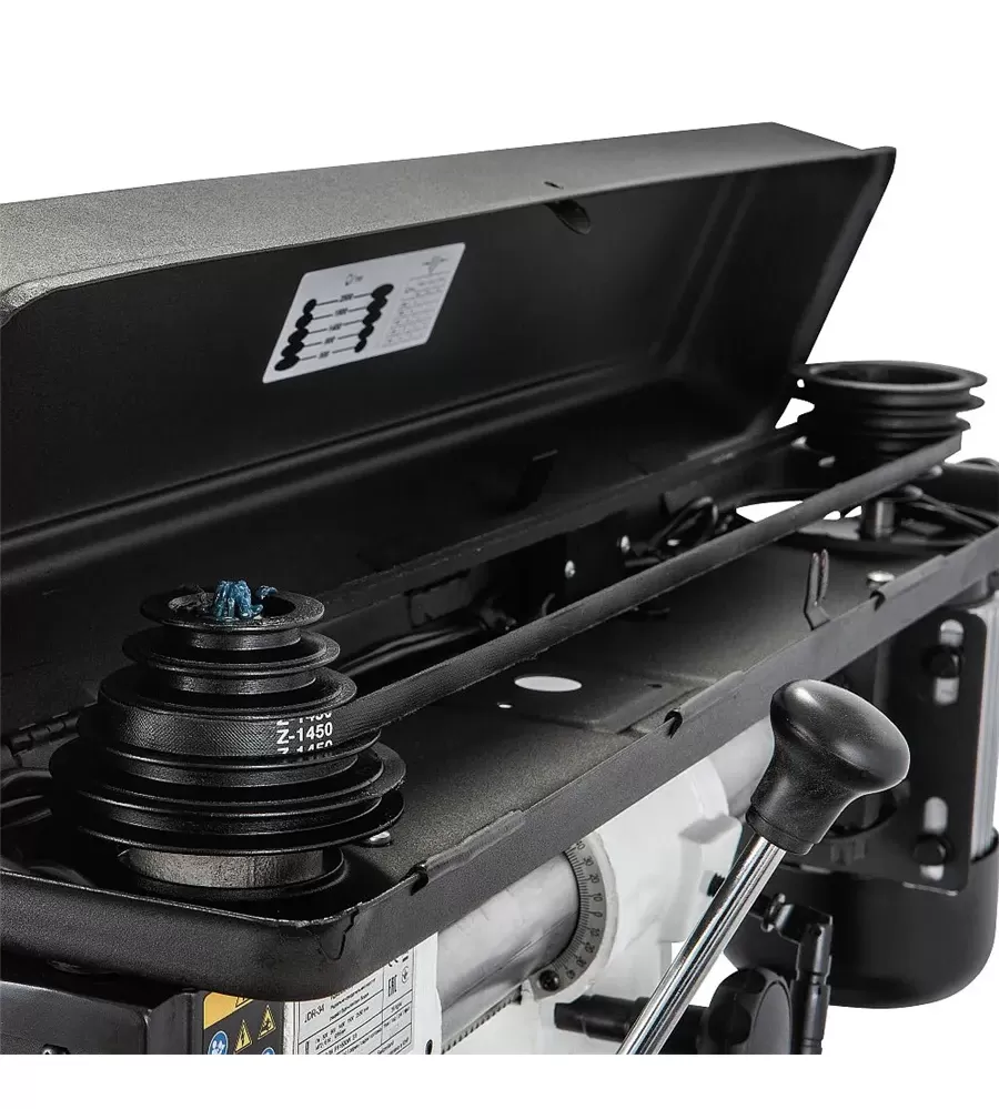 Radiální stolní vrtačka JET JDR-34 má výkonný indukční motor o příkonu 600 W určený pro dlouhodobý chod stroje.