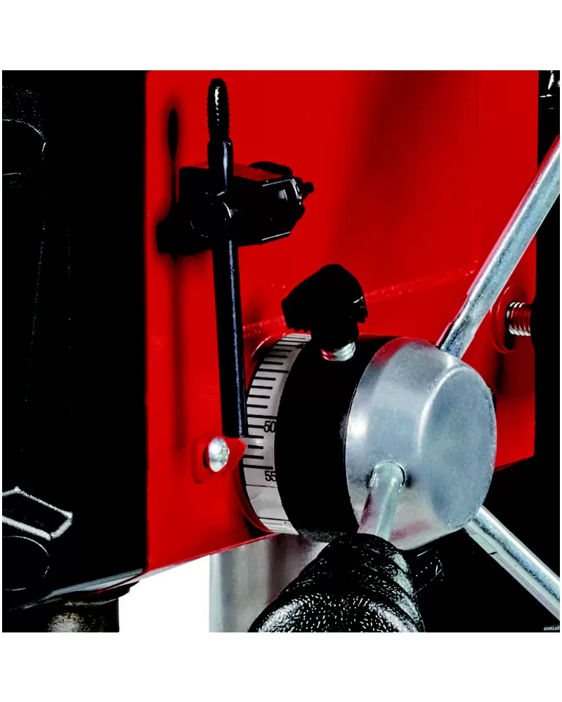 • Tříramenná páka vrtačky neustále zajišťuje dokonalé dávkování přítlaku a nastavitelný hloubkový doraz zase přesné vrtání