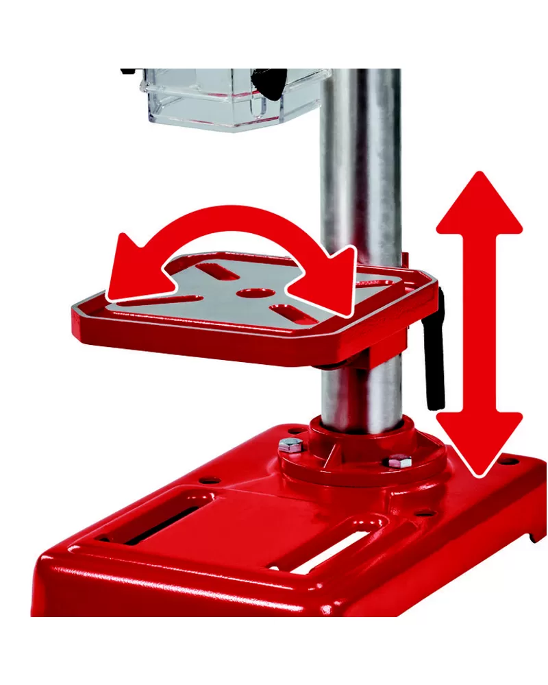 • Pro variabilitu je tato sloupová vrtačka dodávána s plynule výškově nastavitelným vrtacím stolem