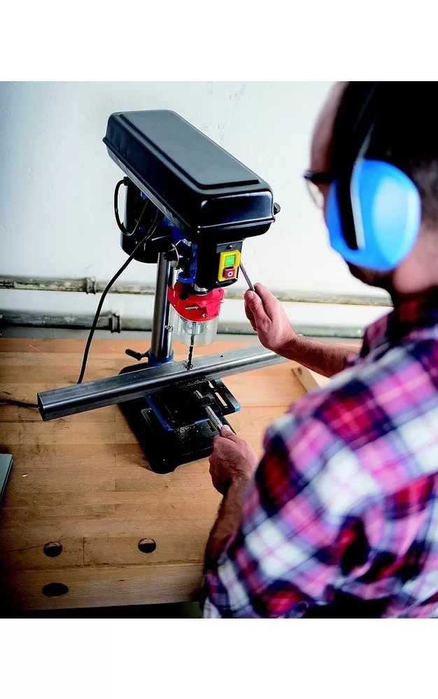 Skvěle vybavená stojanová vrtačka, vhodná hlavně pro náročné kutily nebo do dílen.