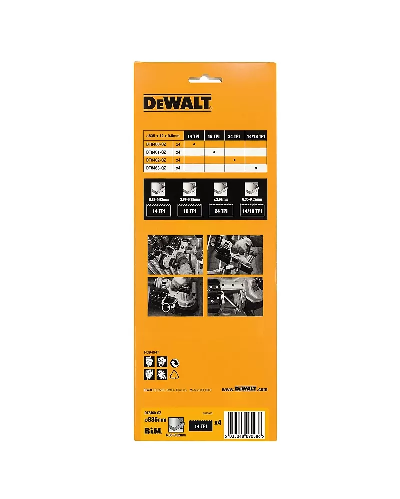 Bimetalový pilový pás 14 TPI pro DCS371 (4ks) DeWALT DT8460 Pro použití s DCS371 Hloubka řezu 6,35 - 9,52mm 4ks v balení Celý popis