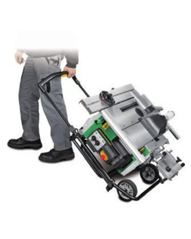 Univerzální víceúčelový stroj HOLZSTAR UMK 6 Hobby stroj pro řezání, frézování, srovnávání, hoblování s protahem a dlabání Posuvný suport zajišťuje jednoduché a bezpečné vedení obrobku při řezání a frézování Stavitelný...