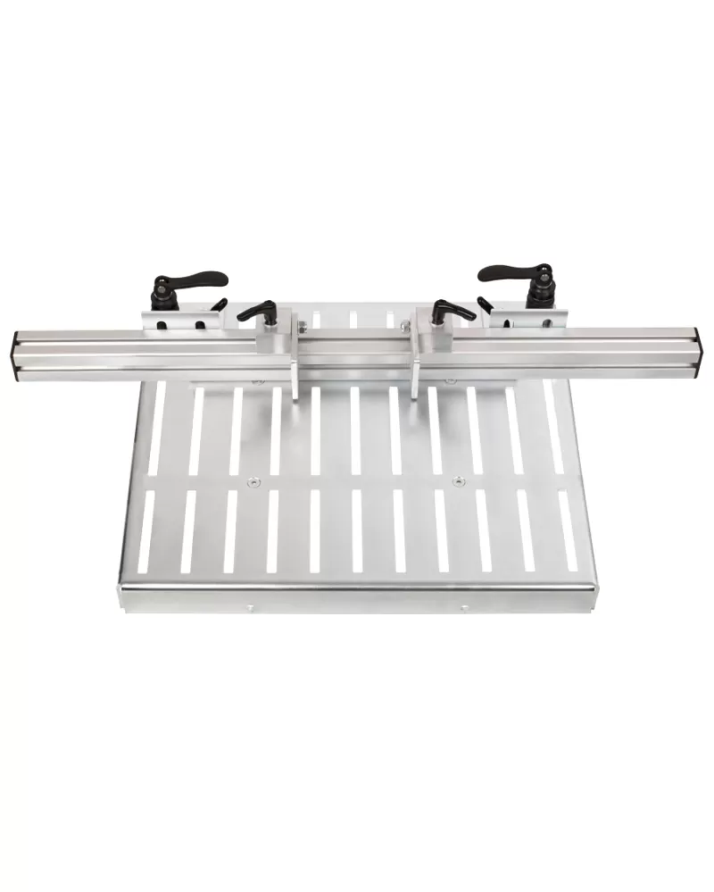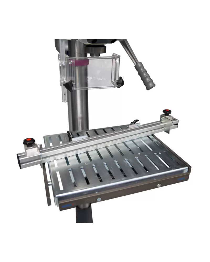 • Volitelné prodloužení stolu je připevněno k bočním montážním lištám a rozšiřuje upínací desku vlevo,