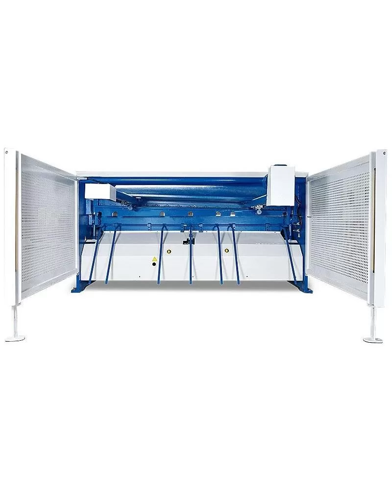Robustní elektrické nůžky na plech se svařovanou konstrukcí a programovatelným zadním dorazem. Pracovní šířka 3130 mm.