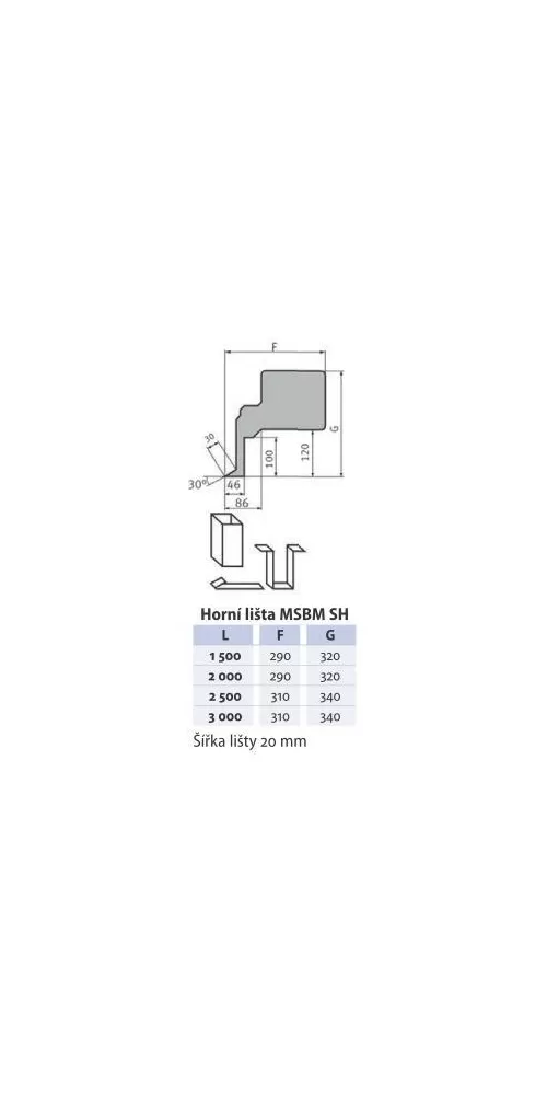 • Ruční ovládání horní lišty, elektrické ovládání vlastního ohybu