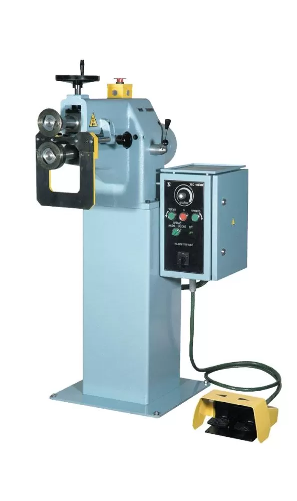 Motorový obrubovací stroj SEMET XBC 100/400 s plynunou regulací a dvoušpkovým nožním spínačem, ručním přítlakem horního hřídele. Stroj je určen k obrubování, zakládání, lemování, vyrovnávání, těsnění den, případně k zakládání drátu nebo stříhání plechů do síly 2 mm a pevnosti 800 MPa nebo síly 3 mm a pevnosti 400 MPa. Klempířský obrubovací stroj se skládá z litinového tělesa ve kterém jsou uloženy hřídele s ozubenými koly, mechanizmus přesouvání spodního hřídele a přitlačování vrchního hřídele.