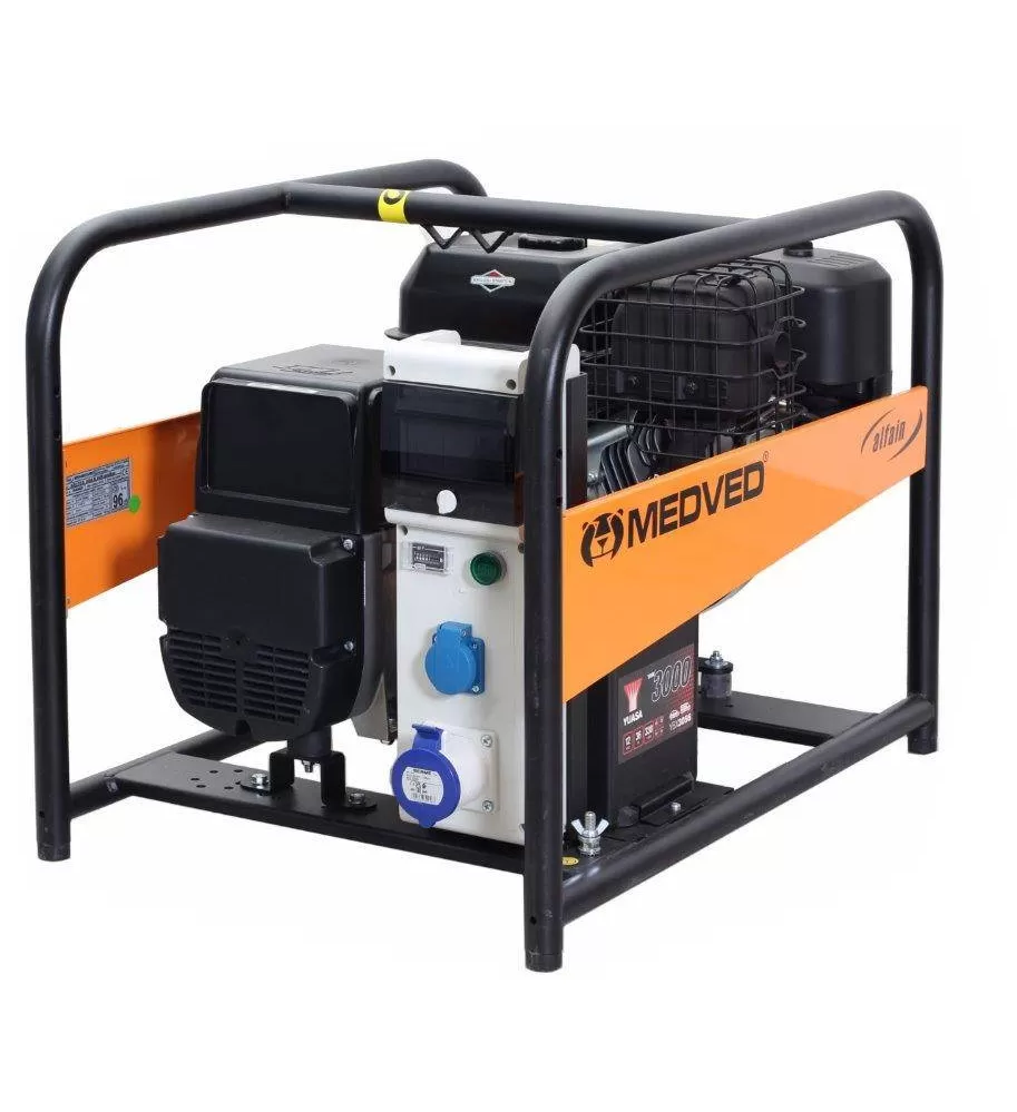 Elektrocentrála MEDVED ARCTOS 9000 B Profesionální benzínová jednofázová elektrocentrála s výkonem 8 kVA, motor BRIGS s ručním startem.