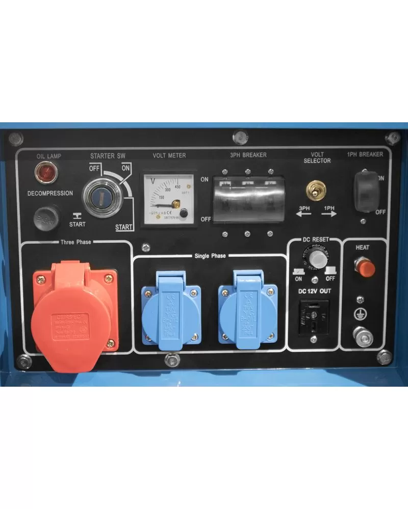 • Generátor proudu: třífázový, synchronní; AVR (elektronická regulace výstupního napětí), voltmetr, jistič proti přetížení výstupních obvodů