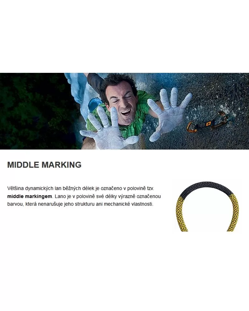 • Tenčí průměr a vyšší počet normovaných pádů (9 pádů dle norem UIAA) předurčují toto lano pro trénink těžkých cest na a RP přelezy